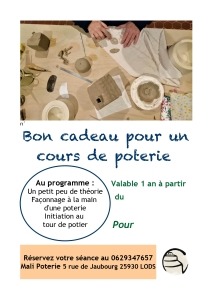 Carte cadeau pour un cours de poterie